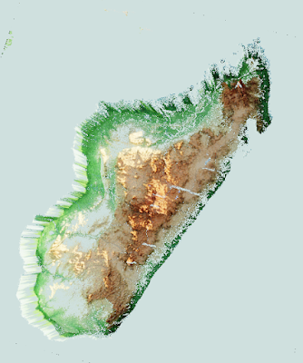3D mapping is out of my comfort zone so while I did post separate maps for each day they were both done using the same data set. I used Blender, a wonderful, but also difficult software package and grabbed a digital elevation model of Madagascar. As shown in the above image the island appears to be sinking into the Indian Ocean. This is due to a combination of a model that needs more work and my own Blender knowledge limitations. I think a bit of 30 day map challenge fatigue was also beginning to take its toll on these maps.