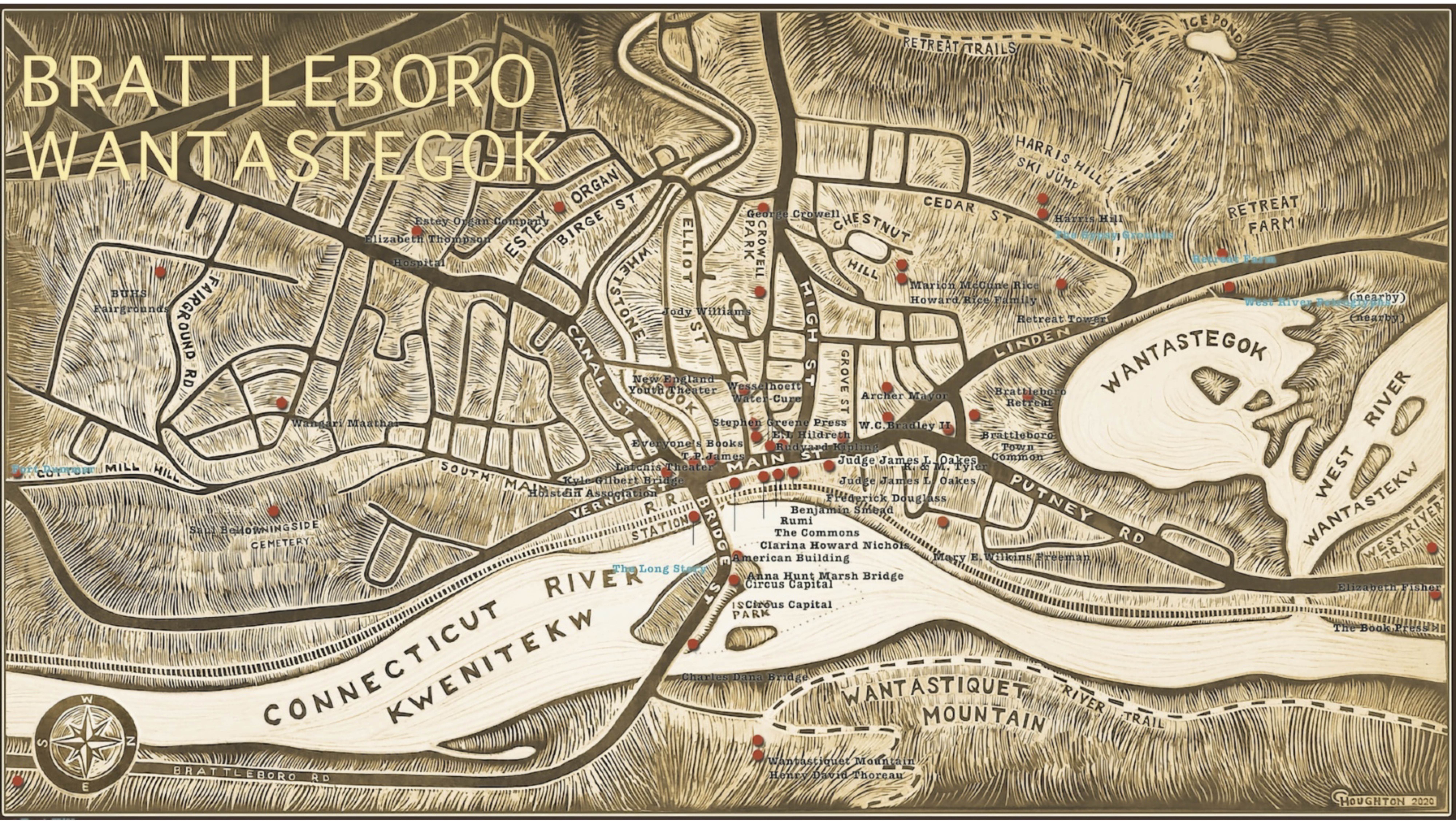 Brattleboro Words is a project of the National Endowment for the Humanities. They will be revamping the map for 2026 when the whole Trail will be featured on the new Amtrak station outside track facing side of building.The project also has a podcast - https://brattleboro-words-trail-podcast.simplecast.com/episodes/ (available free all formats Apple, Spotify etc...)