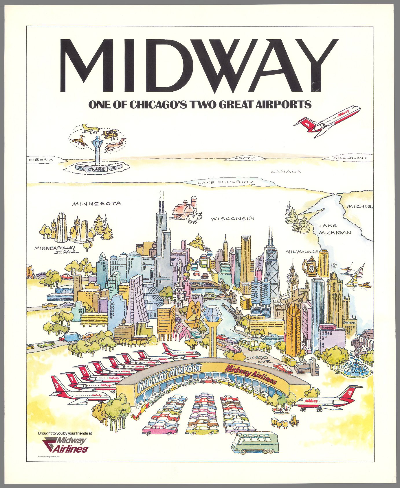 This one is probably my favorite. “One of Chicago’s two great airports“ exaggerating the centrality of Midway while implying that you need to travel almost to Siberia just to get to the chaos of O’Hare Airport.