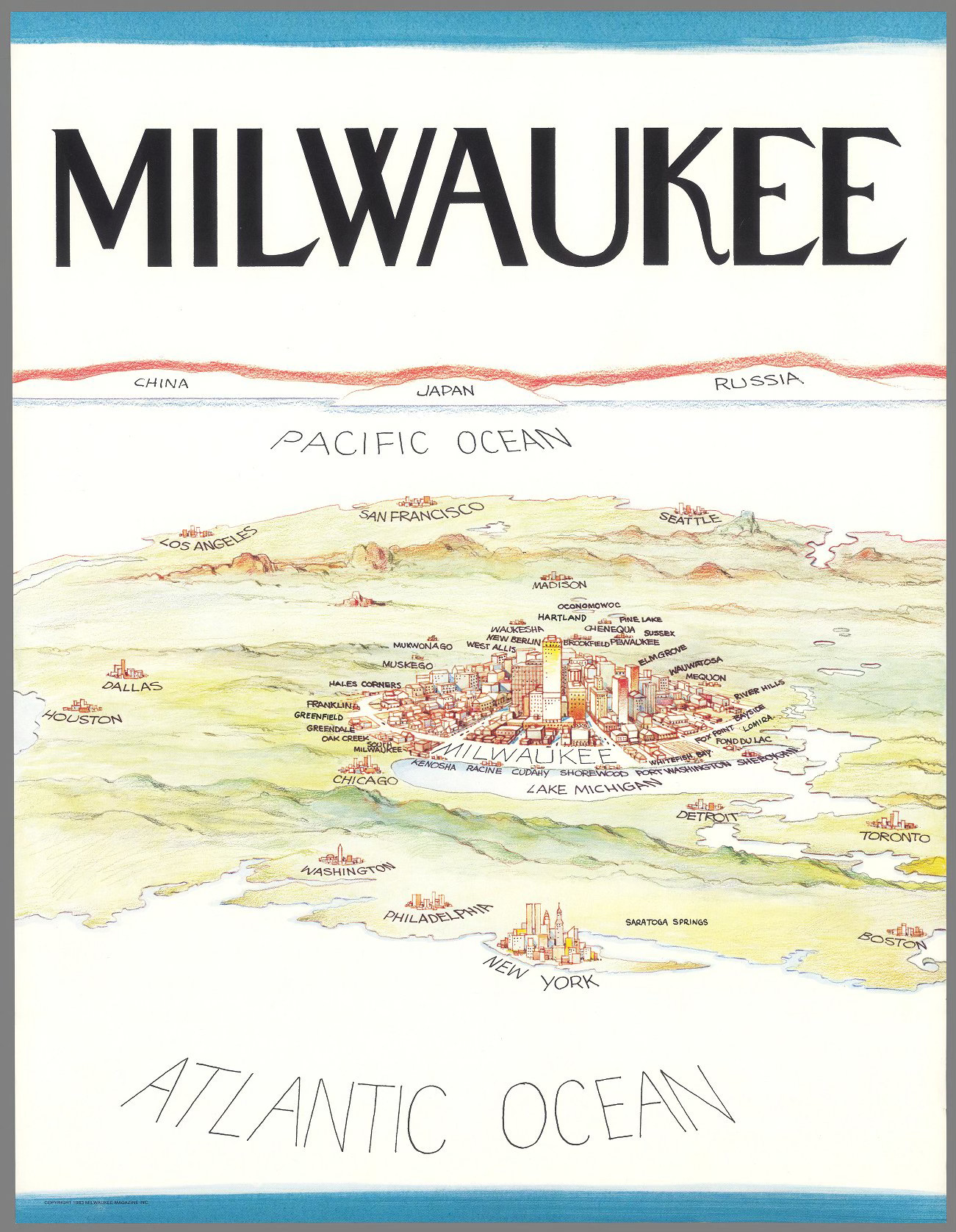 The humorously exaggerated myopia of a “typical“ New Yorker led to many imitations across the world. I found a bunch of examples on the David Rumsey Map Collection when looking for something completely unrelated. Here is Milwaukee.
